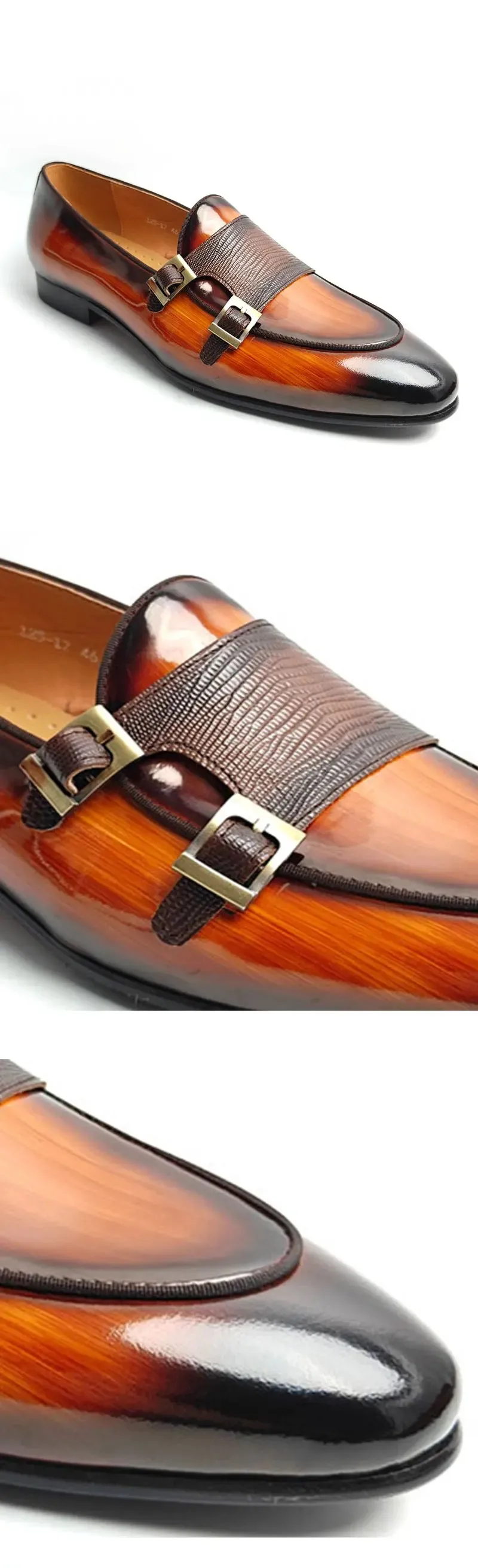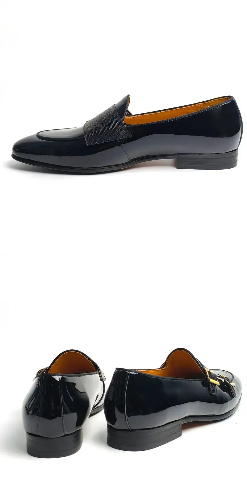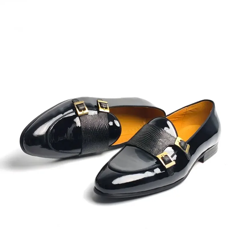 Hotselling Handmade Men's Patent Leather Shoes Summer Casual Wear For Wedding Party Office Monk Buckle Slip-On Man Shoes Genuine