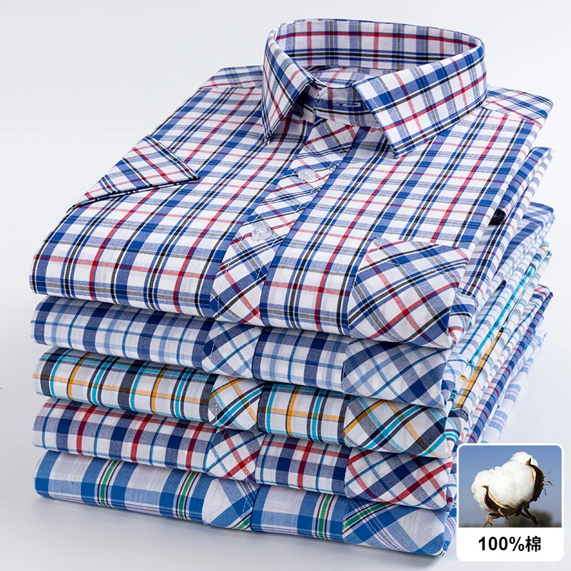 Plaid Short Sleeve Shirts For Man Cotton Checked Colorful New Fashion Summer Young Boy Beach Clothing Confortable Casual Shirts